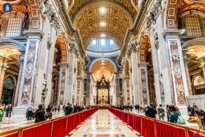 - Nhà nước Vatican – một quốc gia độc lập Thiên Chúa giáo ngay trong lòng nước Ý, chỉ cách Rome một dòng sông. Chiêm ngưỡng toàn cảnh Vatican với các kiến trúc được xây dựng bằng đá phiến lớn rất nguy nga đồ sộ, mang đậm nét đặc trưng của kiến trúc La Mã cổ đại. Tham quan Nhà nguyện Cappella Quảng trường Thánh Pierre – nơi tập trung những tinh hoa của các thời đại được xây dựng năm 1667, hai bên quảng trường là các cửa hàng.Tham quan Thánh đường Peter’s Basilica (Chú ý không được mặc váy ngắn, dép lê)