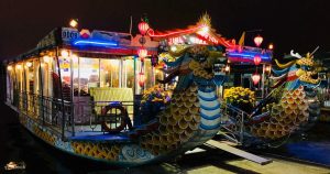 Tối: Ăn tối nhà hàng với đặc sản xứ Huế (Bánh bèo, lọc, nậm, khoái,…). Ngồi thuyền Rồng nghe Ca Huế và thả hoa đăng cầu may trên dòng Hương thơ mộng.