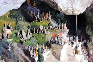 8h00: Thăm quan Động Pak Ou (động cửa sông Nam Ou) là các động đá vôi Tham Ting (Hạ Động) và Tham Theung(Thượng Động) nằm gần trung tâm Luang Prabang. Trong động có những chạm khắc ấn tượng với hơn 4000 pho tượng Phật cổ có từ hơn 300 năm trước với đủ kích thước và hình dạng do người dân Lào ban đêm chèo thuyền trốn giặc để cất giấu tượng Phật khi kinh đô Luang Prabang bị ngọai xâm.